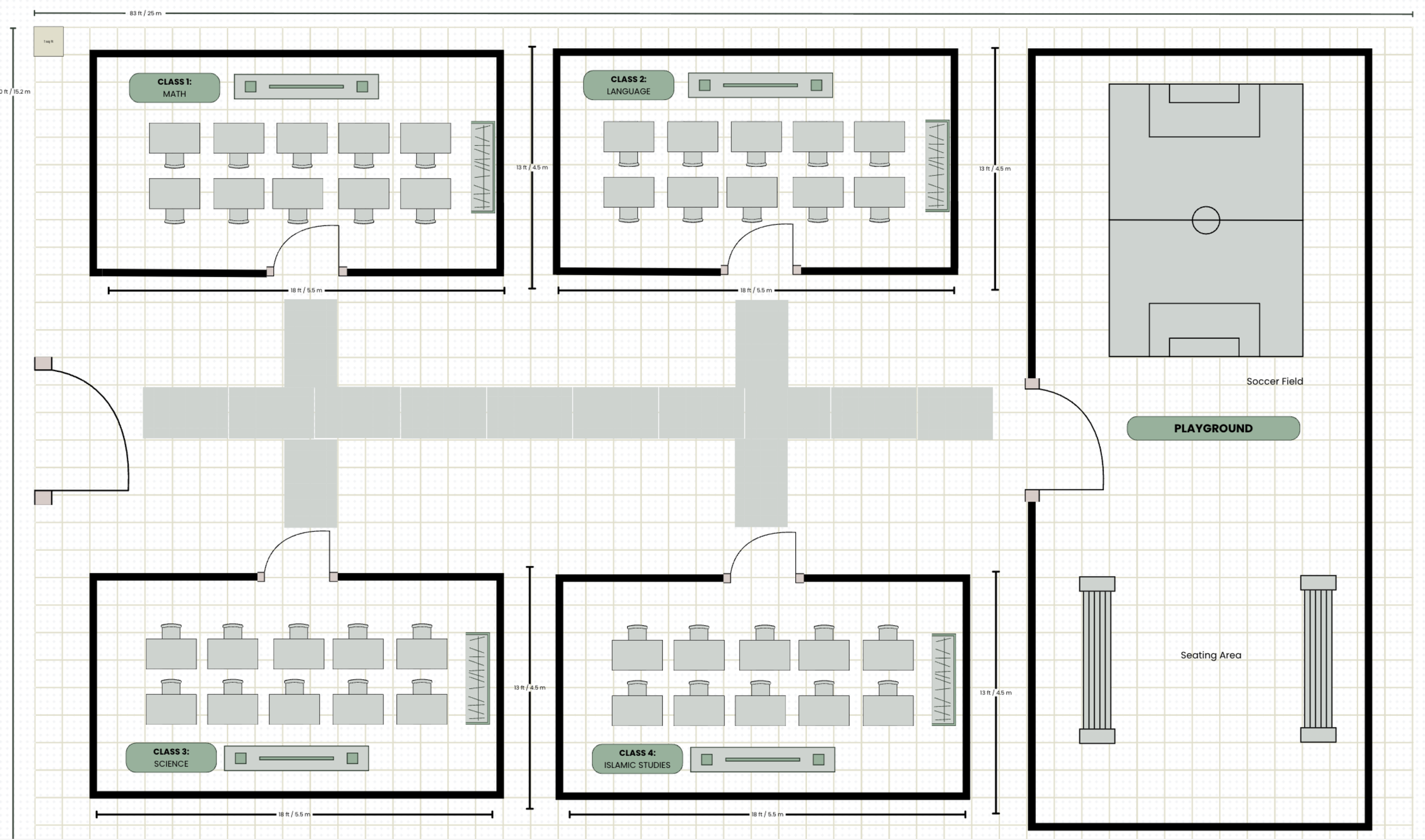 Below is a floor plan illustrating the proposed layout of the Ajniha Youth Community Centre